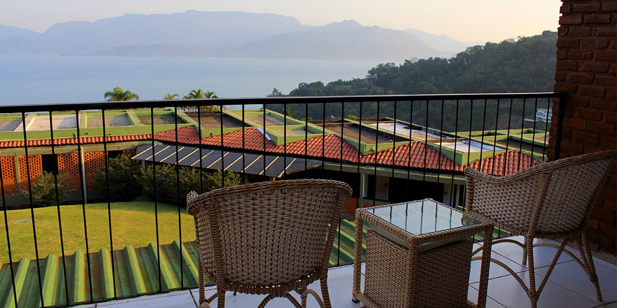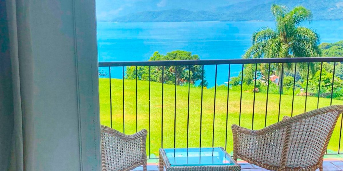 Varanda com vista parcial para o mar